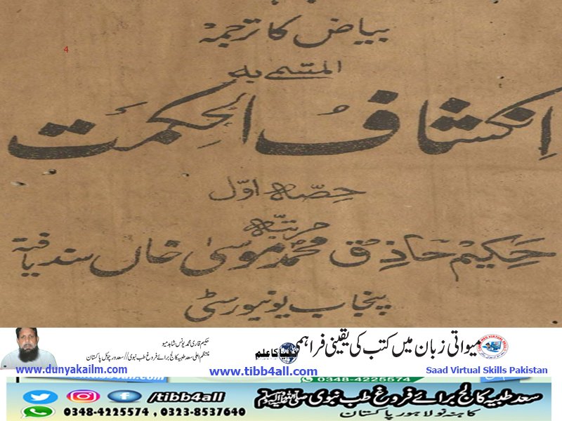 دنیا بھر میں طبی مجربات کی لاثانی کتاب آج سے صدیوں پہلے کے فارسی مخفی طبی بیاض کا ترجمہ المسمی بہ انکشاف الحکمت