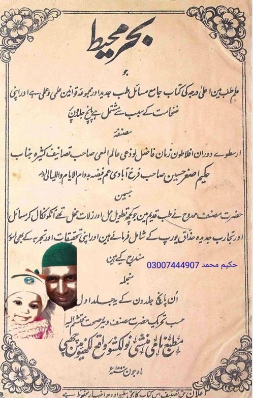 حضرت مصنف مدوح نے طب قدیم می جو کچھ تطویل مل اور زلات محل تھے انکو نکال کر مسائل اور تجارب جدیدہ حذاق یورپ کے شامل فرمائے ہیں اور اپنی تحقیقات اور تجربہ کے بھی اسوسسندرج کیسے ہین